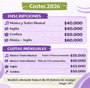 Horarios y Aranceles Autor de la entrada:Equipo de Redacción Entrada publicada:26 febrero, 2026 Categoría de la entrada:Blog También te podría gustar El Hospital Escuela tiene un taller musical. 20 diciembre, 2024 Grillitos Sinfónicos celebró sus 20 años 28 diciembre, 2023 El carnaval de los animales 9 noviembre, 2024